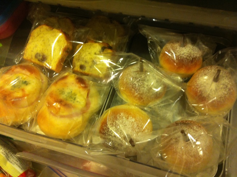我が家、こんな感じ↑で、いつもつくった菓子パン系のものは冷凍しています。