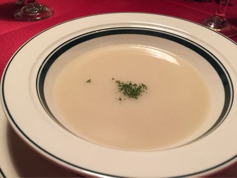 何てことないサラダですが(失礼)、テーブル横までワゴンで持ってきて、そこでドレッシングやブラックペッパーをかけてひとつずつサーブしてくれます・・・。こういうのも値段に入っているんでしょう(笑)