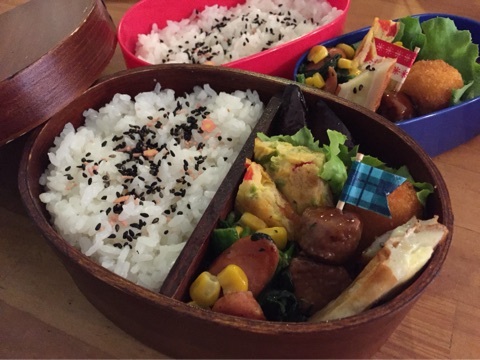 うっかり忘れてて、昨夜12時過ぎに気がつき、朝おかずをかき集めて何とかできました!(^^;
