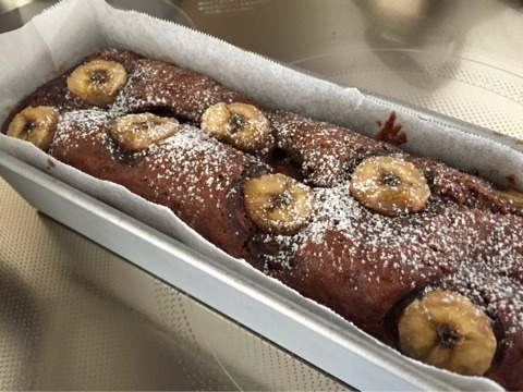 まず、死にかけのバナナ4本使って、バナナショコラケーキ焼きました!!