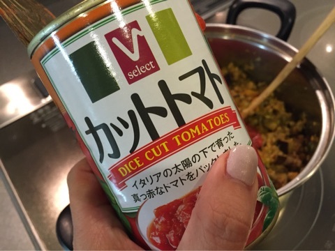 カレー粉を入れて炒めたら、あとはカットトマトを投入~♪