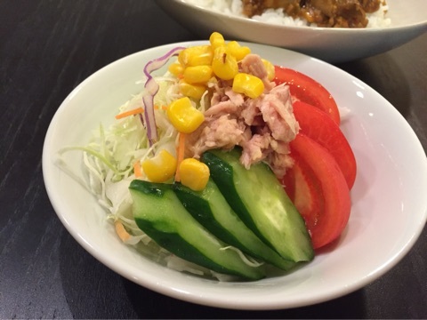 この盛り付け、遠い昔の学食のツナサラダを思い出しました~。学食のサラダはなぜかコーンが山盛だったな・・・