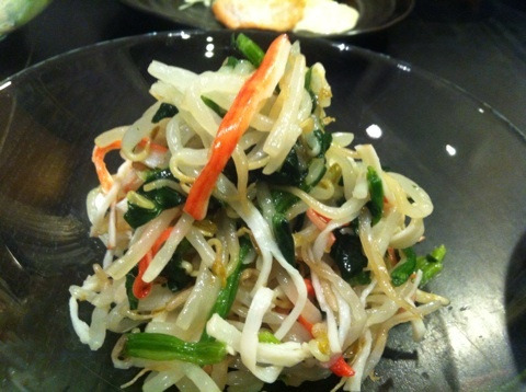 さっぱりともやしナムル。ほうれん草は今高いので、冷凍のほうれん草を使っています!彩りに入れるぐらいなら冷凍で十分♪^^