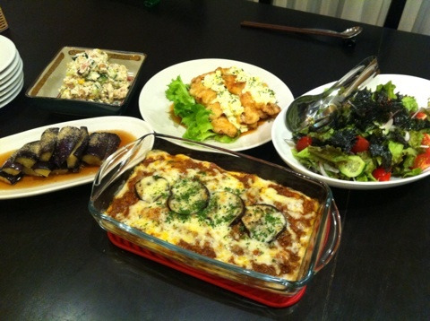 いろいろ考えたけど、結局いつもの夕食みたいになってしまいました~。
