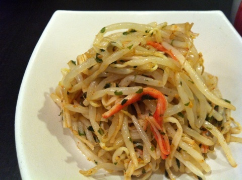 この前つくったしそキムチペースト、今日はもやしを和えました!彩り悪いからきゅうりも入れればよかったかな?(笑)