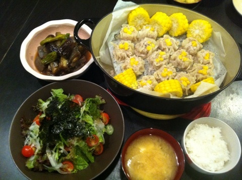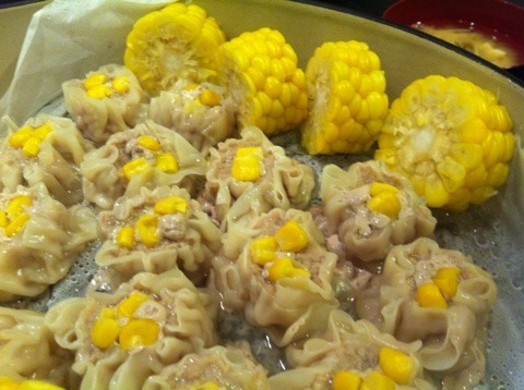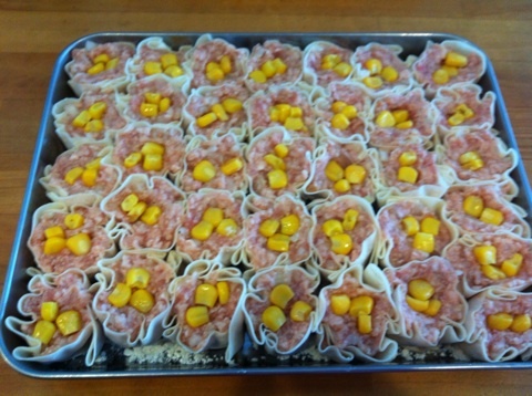 私、グリーンピースがニガテなので、しゅうまいにはいつもコーンか枝豆なんですけど、今回コーンかぶりに!(笑)枝豆にしとけばよかったな・・・。