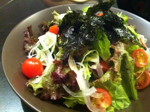 上に韓国海苔を手でちぎってたっぷりと乗せて、味付けはごま油とミルで引いた岩塩、お好みでレモン汁をかけて、食べる直前に豪快にまぜまぜしまーす!