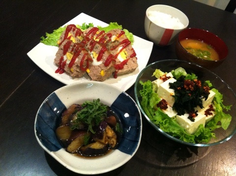 ごはん&お味噌汁ハンバーグにしようと思って買ってきた合挽きミンチでしたが、時間なくなってきて6個&お弁当の3個を丸めるのがめんどくさくなってきてですね・・・・
