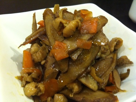 予定ではきんぴらごぼうでしたが、この日の夕方はあの仕事のミスでドタバタしていたので、千切りにする時間がなくて(笑)斜め薄切りをそのまま炒め煮にしました!