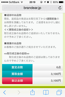 ちなみに、私、買い取り成立した翌日にはもう振込予定のメールが来て、その翌日には現金が振り込まれていました。仕事早いですブランディアさん!(^_^)v