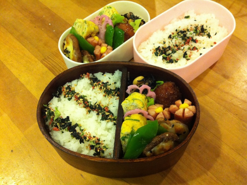 いつも三つお弁当はつくっていますが、長女のみ早く家を出るため、いつも撮影は次女とダンナさんの分2つしか写ってません~(´Д`;)