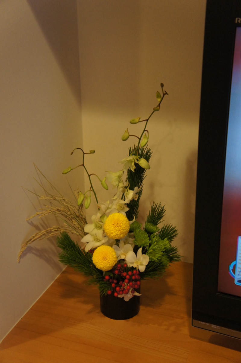 玄関が寒すぎて、お正月に飾ったお花がまだ全然キレイだったので、リビングに移動させました。『迎春』の飾りだけとったら、まだイケる?!(笑)