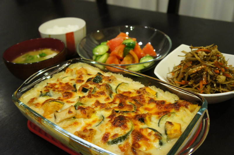 和風グラタンの晩ごはんです。
