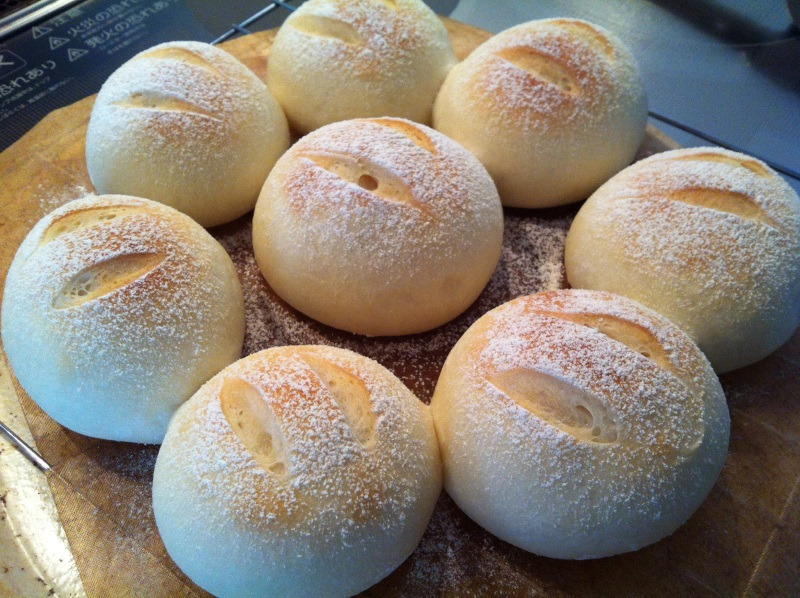 私のパン作りも、基本強力粉、塩、砂糖、ショートニング、イーストです。卵もバターもスキムミルクも使いません。