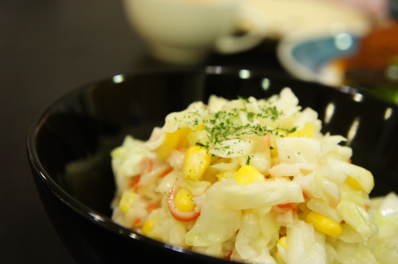 カニカマとコーンのコールスローサラダ。