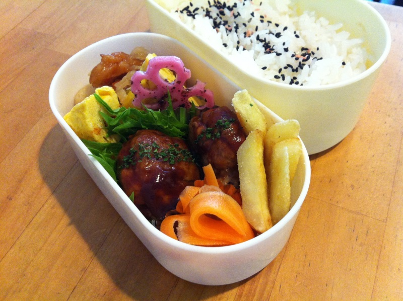 なるべく夕飯のおかずとかぶらせて詰めちゃえ(笑)