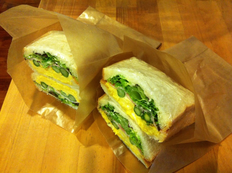 中身は、スクランブルエッグ、サニーレタス、ハム、アスパラです!