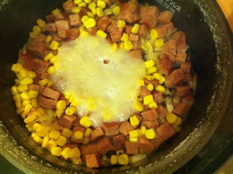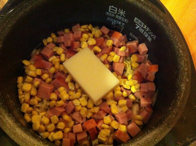 にんじん、コーン、炊きあがってから枝豆です。