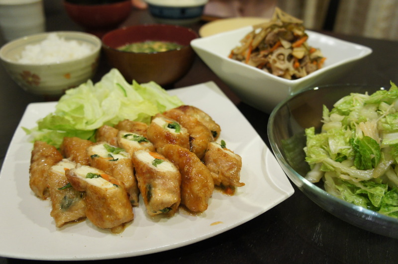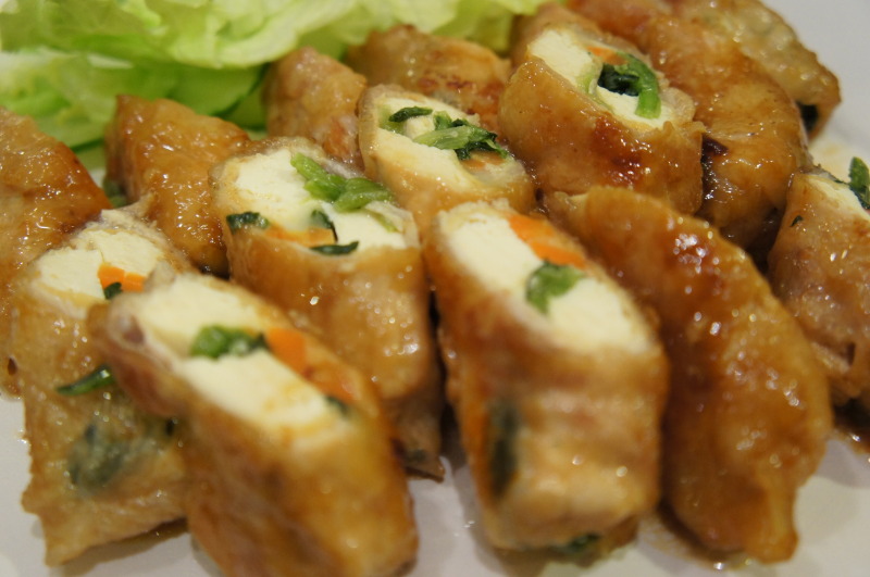 厚揚げ、ニンジン、ほうれん草、チーズを巻き込みました。