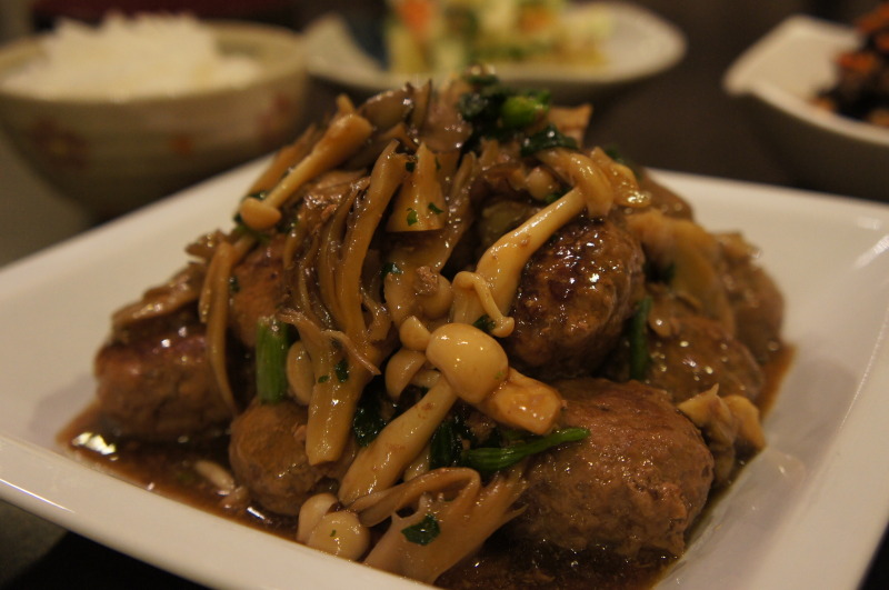 俵形にした小さめのハンバーグを両面しっかり焼き目をつけて、