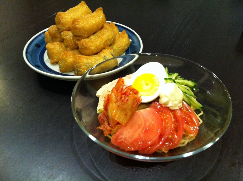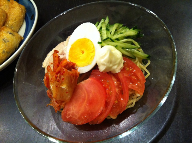 ハムではなくゆで鶏(ゆで卵の向こう側)にしただけですけど