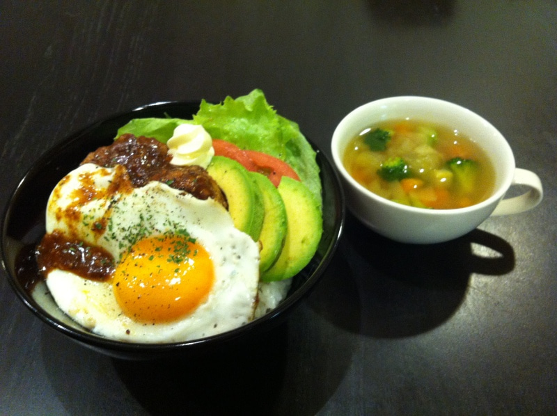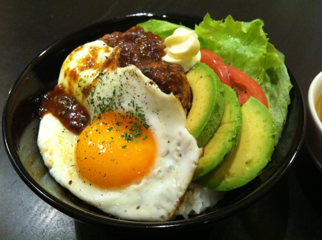 ハッシュドビーフのルーを使ったなんちゃってロコモコ丼ですが、簡単でなかなかおいしいんですよ。