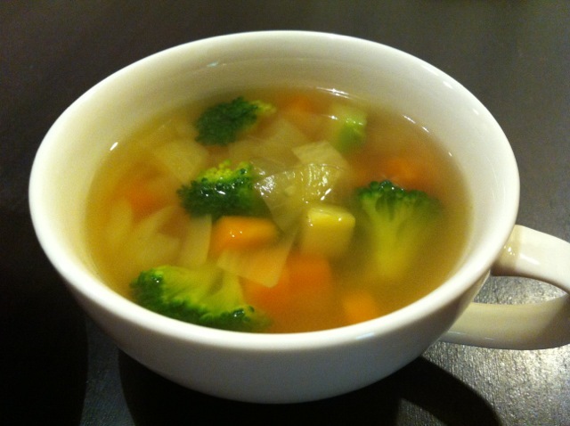 ニンジン、タマネギ、大根、ブロッコリーの茎を1センチ角にカットして、