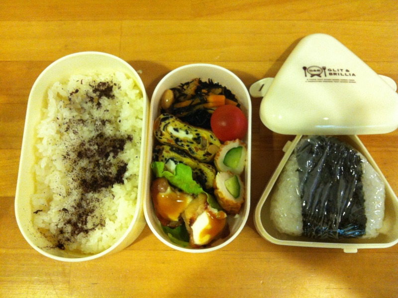 ちなみに、今日の長女のお弁当と補食のおにぎりです。