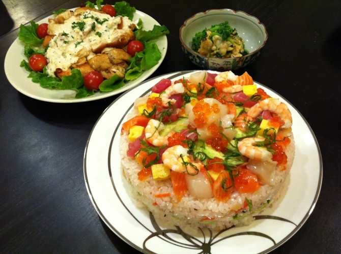 ちらし寿司には、お約束のから揚げにしようかと思ったんですが、