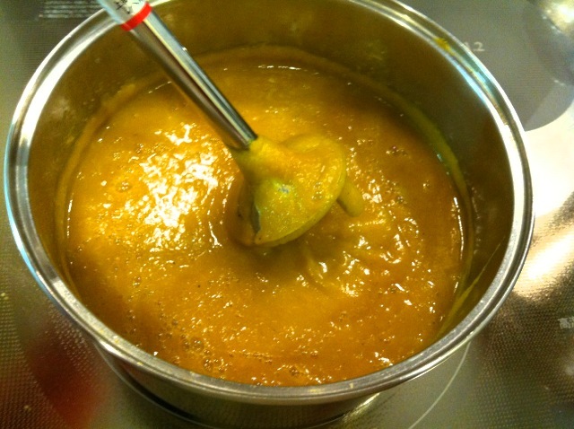 ③全部がやわらかくなったら、ブレンダーでつぶす(ミキサーでも可)