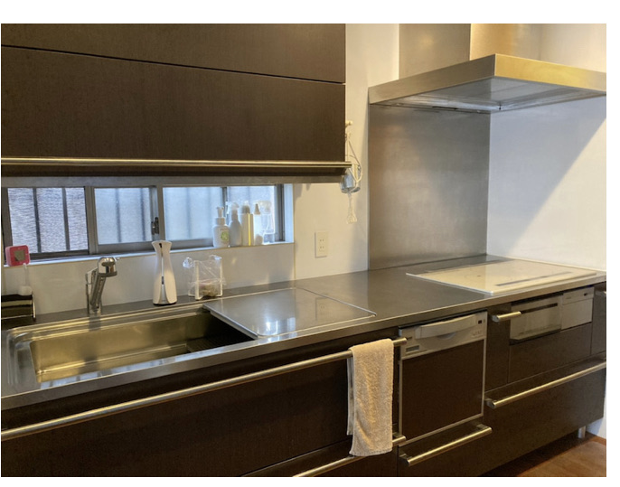 昔ながらの壁に面して設置してある、いわゆるオープンキッチンでして↓