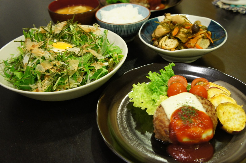 昨日の晩ごはん&今日の冷たいおやつ♪ 2013年05月14日 皆さん、こんにちは昨日の我が家の晩ごはんは、オーソドックスなハンバーグでした~【昨日の晩ごはん】チーズのせハンバーグ切り昆布とがんもの煮物水菜と新玉ねぎの温玉サラダごはん&お味噌汁チーズインハンバーグではなく、チーズオン?ハンバーグ(笑)。上からスライス ... 続きを読む